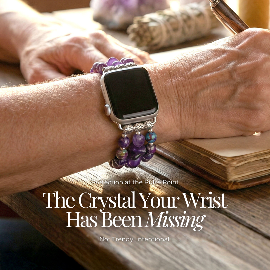 Você entende a importância do pulso — o fluxo, o meridiano, as sutis mudanças. O que repousa ali deve parecer alinhado. Nossas pulseiras são feitas com pedras verdadeiras, cuidadosamente selecionadas e respeitosamente montadas. Não é moda passageira de cristais. Não é simbolismo produzido em massa.